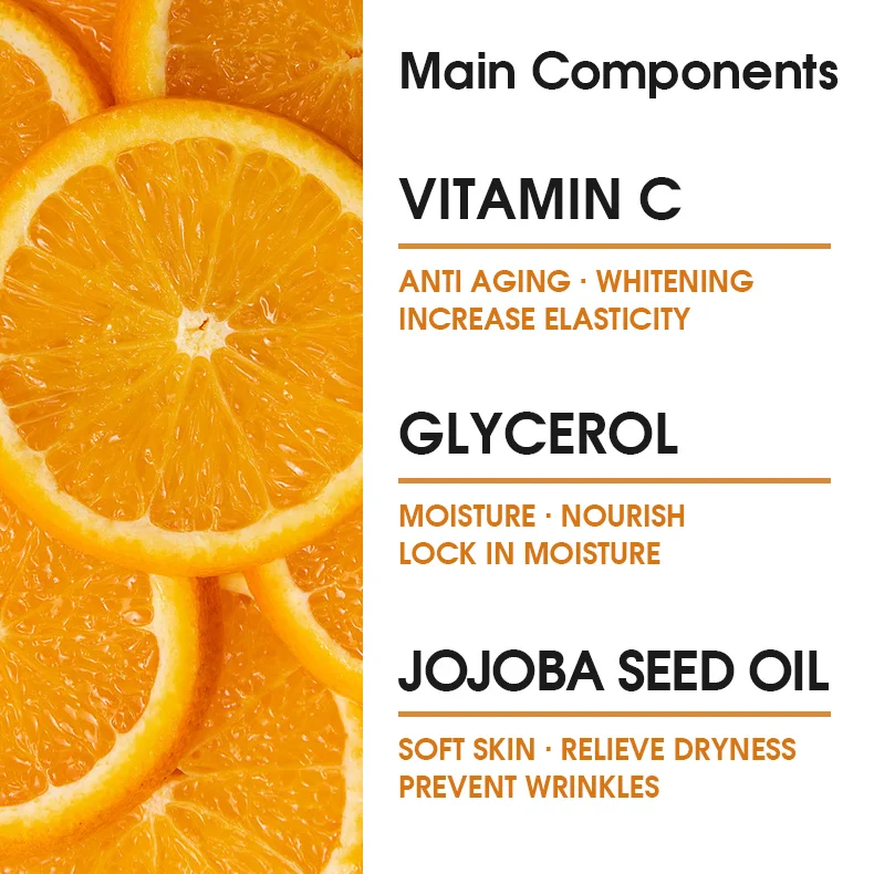 Vitamin C: Boosts skin brightness and reduces wrinkles.